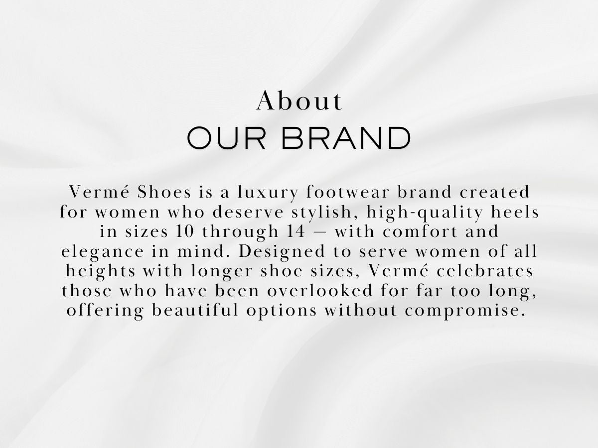 Growing up wearing sizes 11–12, I struggled to find stylish, high-quality heels that truly fit — and I know I’m not alone. Vermé was born from a desire to create luxury footwear for a group of women who are often excluded: sizes 10–14.